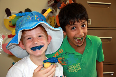(we went to his classroom to celebrate with some very tasty cupcakes. Easton did not want a big birthday party he likes things pretty quiet. His birthday requests included - day off school, a few presents and resturant of his choice. Pretty easy going!)